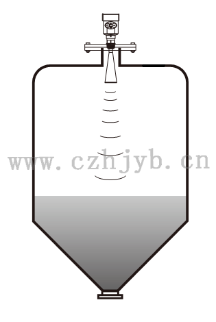 注:使用雷達物位計時,務(wù)必保證最高料位不能進入測量盲區(qū)(圖中D所示區(qū)域)。