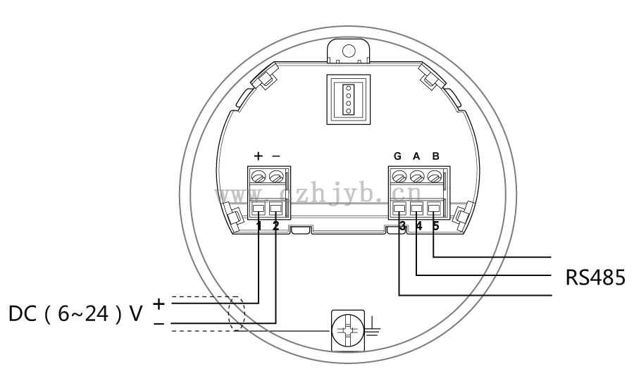RS485/Modbus 供電電源和Modbus信號線分開各自分別使用一根兩芯屏蔽電纜線,具體供電電壓范圍參見技術(shù)數(shù)據(jù)。