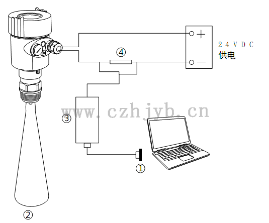 (4~20) mA/HART(四線制) 供電電源和電流信號分開,各自分別使用一根兩芯屏蔽電纜線。具體供電電壓范圍參見技術(shù)數(shù)據(jù)。