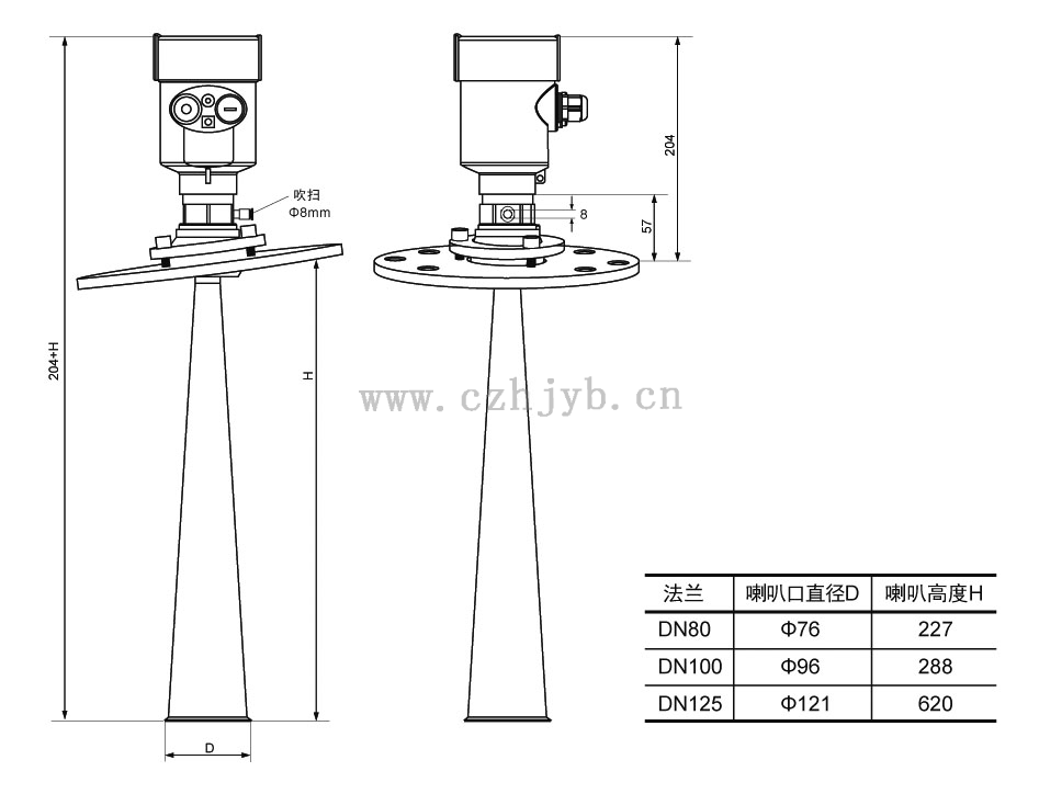 ● 天線尺寸小,便于安裝;非接觸雷達,無磨損,無污染。