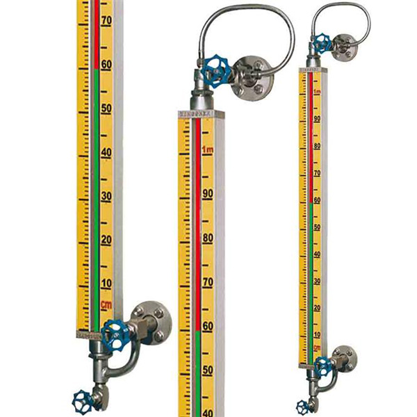 UGS玻璃管彩色液位計(jì)有石英玻璃管,殼體,上,下閥門組件等組成一個(gè)連接體。通過法蘭與儲(chǔ)罐上的法蘭的對(duì)接形成一個(gè)連通回路,根據(jù)邊通原理,液位計(jì)中液位高度就是容器內(nèi)液體的真實(shí)高度,液位計(jì)本體運(yùn)用光學(xué)的透反原理,使有液部位呈現(xiàn)綠色,無液部位顯示紅色,從而是界面清晰,涇渭分明。也可根據(jù)用戶需求做成無盲區(qū)型、耐腐型等。